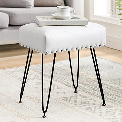 - 🐰 [Multi functional faux leather stool] – This exquisite makeup chair used in the dressing room is made of high-quality faux leather, and anyone can sit on it, which is comfortable. Four strong metal legs make this makeup chair more elegant and charming.This elegant leisure stool can not only be used as a stool for dressing table and ordinary makeup chair, but also as a shoe stool or footstool for you to put your feet on. Very practical, suitable for your house.
