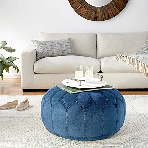 - PRODUCT FEATURES – Mid-century modern style ottoman is a perfect addition to your living room. The subtle bold color fabric is complemented with floral abstract stitching top. The cover fetures high quality soft to the touch fabric that is not only comfortable but also hypoallergenic