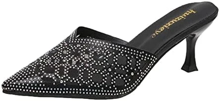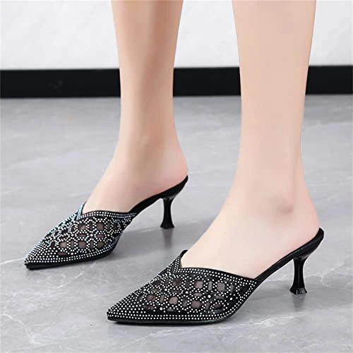 MatureGirl Sandals Women Fashion Summer Women Sandals Pointed Toe Rhinestones High Heeled Hollow Comfortable And Sexy House Gifts Women (Black, 7.5)