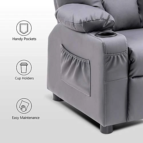 - 2 Cupholders & 4 Pockets: Keep your kids’ favorite toy and books close by with 2 cup holders and 2 side & front pockets. They can read, eat snacks and watch TV on their own furniture with much entertainment to spare the leisure time.