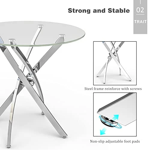 - DINING TABLE – 8mm thickness tempered glass top table.Seats up to 4 people, ideal for small dining area,such as kitchen, dining room, coffee.