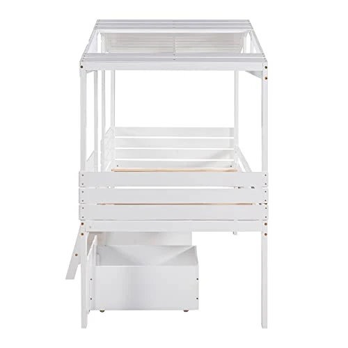 - Low Loft Bed:this low loft bed was designed for kids, high clearance from floor to the bed,The clearance under bed provide spacious place for storage, this twin size loft bed with two drawers is easy to create the extra space when needed