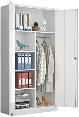 - 『LARGE SPACE DESIGN』In addition to being a great choice for storing a large number of items, this tall steel cabinet has an interior design that adds extra space to any room and opens the door to your home, ideal for protecting your products from Light exposure, temperature, dirt and dust.