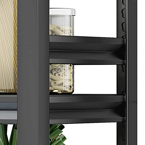 - It is strong enough to store a microwave and other kitchen items such as tableware, spices, canned foods, condiments, bottles, dishes, pots, and pans.