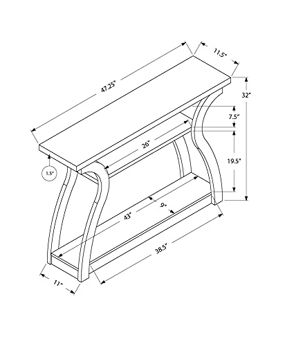 - Dimensions: Console table is 32″(H) x 11.5″ (D) x 47.25″(L). Weight capacity – 62 lbs
