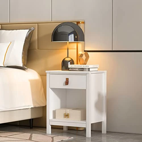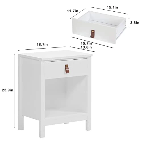 - 【High Quality】The modern end side table is made of P2 MDF wood. Wooden countertop is great for placing alarms, phones, chargers, and glasses