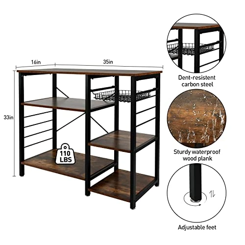 - 【Not Only a Kitchen Rack】 This rustic brown kitchen storage rack has multiple levels to suit your different needs. At the same time, it can also be used as a storage shelf in your living room, office or storage room, it will add a different fashion style to your home