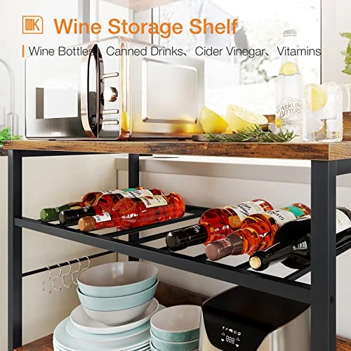 - 【Spacious Storage Kitchen Bakers Rack】This kitchen stand rack includes 6 open shelves & 2 drawers. (Dimension: (31.5″ D x 15.75″ W x 66.81″ H). And the extra wine rack can hold about 8 wine bottles or various water bottles. The 6 shelves offer a massive space for a wide range of appliances. Have an organized kitchen from owning this baker rack now!!