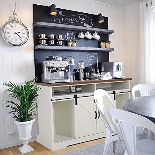 PHI VILLA Farmhouse Coffee Bar Cabinet – Sliding Barn Door Kitchen Sideboard Buffet Storage Cabinet…