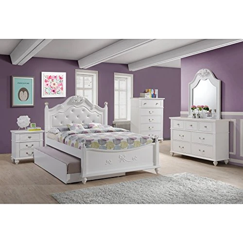 The charming Annie nightstand features drawers with delicate bow moldings adorned with crystal handles and knobs. This well-crafted, beautifully designed nighstand is a perfect addition to any little girl’s room.
