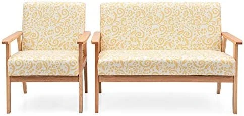 - ❀MORDEN DESIGN – The loveseat adopt curly grass pattern floral design with wooden armrests, combination of modern craft and aesthetics, which can meet people’s need for decorating modern living room