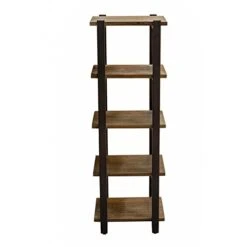 Alaterre Furniture Pomona 48″ Tall Metal And Solid Wood Storage Floor Shelf With Nylon Floor Levelers & Durable Lacquer Finish In Natural Reclaimed Wood Look, Perfect For Rustic Industrial Home Décor