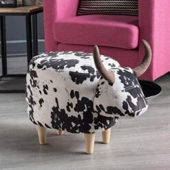 Christopher Knight Home Bessie Patterned Velvet Cow Ottoman, Black And White Cow Hide / Natural