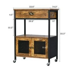 HOMBCK Coffee Cart Coffee Bar With Storage, Industrial Coffee Station With Drawer, Farmhouse Coffee Station Table With Doors And Shelves, Small Coffee Bar For Living Room, Rustic Brown