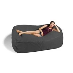 Jaxx 5 Foot Saxx Bean Bag Chair For Adults – Luxe Faux Fur, Silver Fox