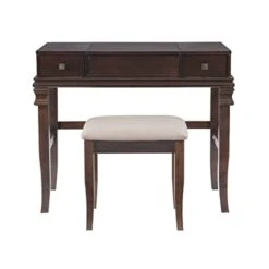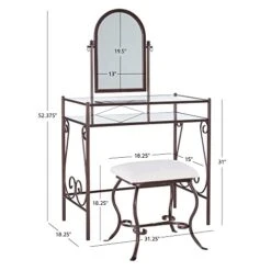 Dark Metal Set Table With Upholstered Stool Clarisse Vanity, 52.4″ X 31.8″ X 18.3″