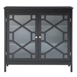 Linon Stephanie Script Linen Ottoman, 32″W X 16″D X 18″H, Gray/Black