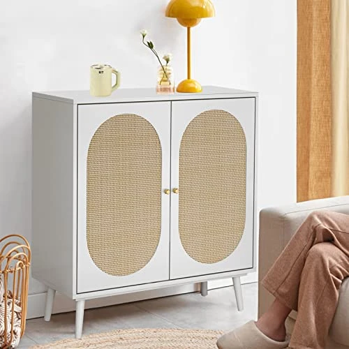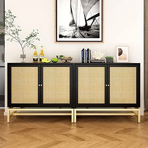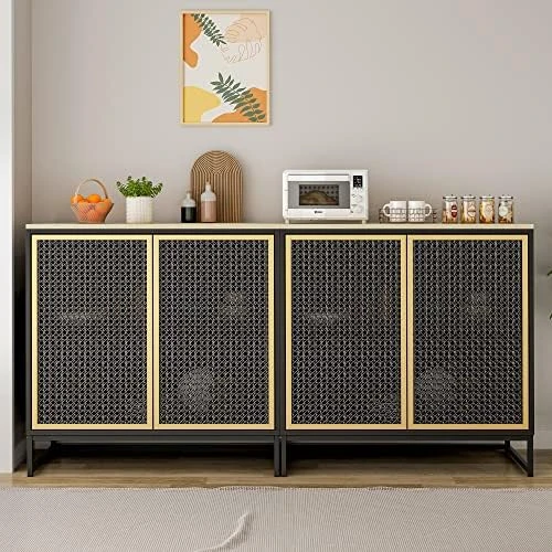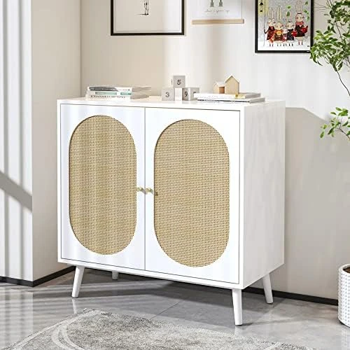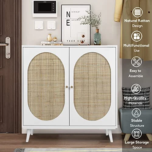 - 【Fast Delivery & Easy to Assemble】Ships from US warehouse and arrives in 3-6 days. Rattan sideboard buffet cabinet comes with clear instructions and all parts were included, easy to put together. If you have any problems about accent storage cabinet, please feel free to contact us, we will respond you ASAP in 24 hours.