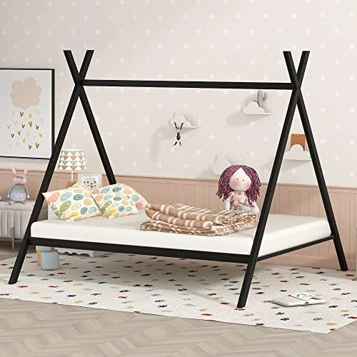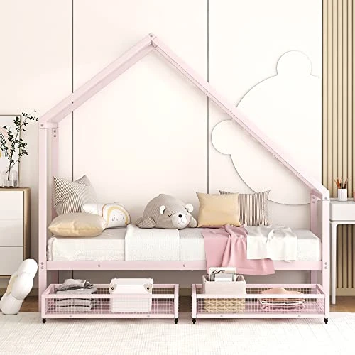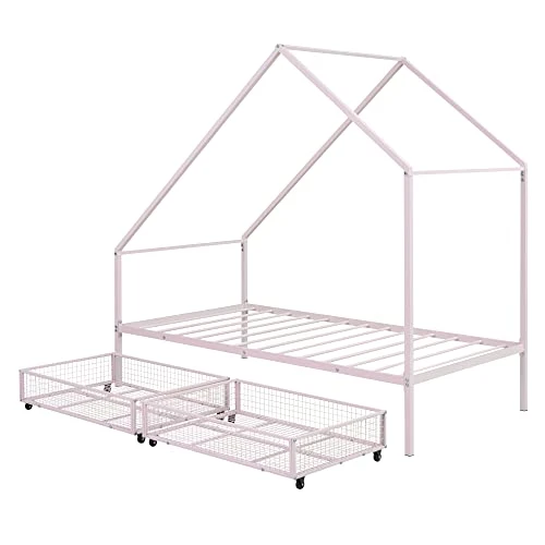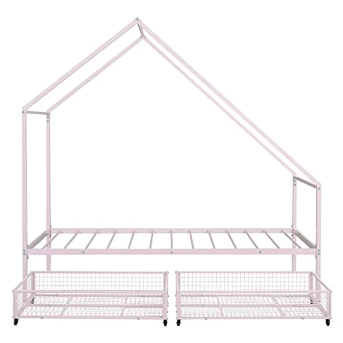 - 🏠【Sturdy Frame】The kids house bed frame is made of metal and painted, the metal slats provide strong support, the structure ensures both lifetime use and a sturdy frame that won’t shake, the metal frame enhances stability and durability, the sturdy construction of the house bed makes the whole bed stronger for long term use.