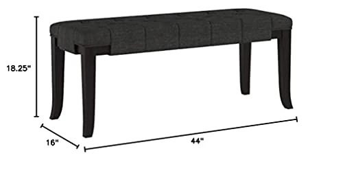 - Tapered and flared legs on this bench are built of solid hardwoods and finished in Espresso.