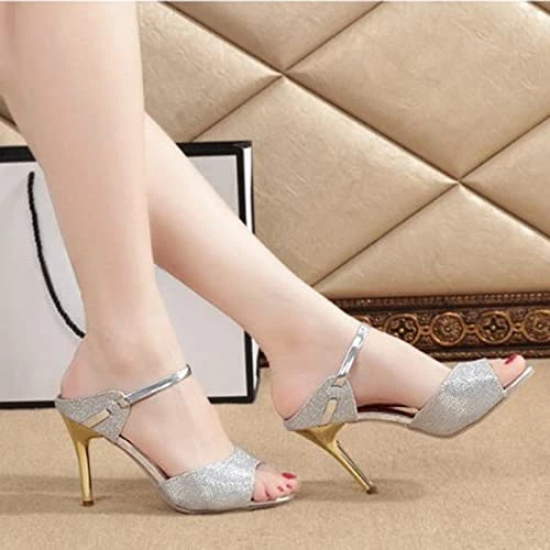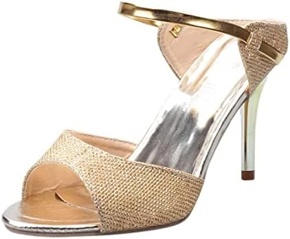 Sandals Women Summer Fashion Summer Women Sandals Shiny Rhinestone Strap Middle Heel Chunky Heel Open Toe Sandals Womens Flat Sandals Size 9.5 (White, 7.5)