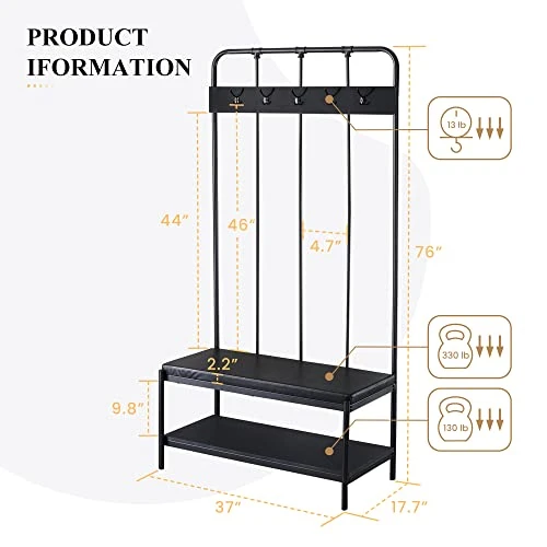 - Sturdy Construction: Built with a steel frame and high-quality wood, the coat rack shoe bench is designed to last. With a bench weight capacity of 330 lb, you can sit comfortably and put on your shoes without any worries.
