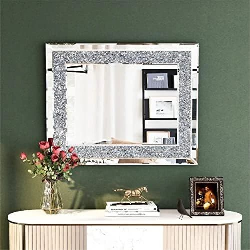 - MATERIAL: The diamond mirror is made of 5 MM silver glass and constructed by MDF wood back, design with bling crystal inside the frame, which will provide HD reflection without distortion, reinforcement and stability for long-term decorative use for home decor.
