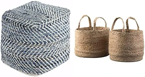 - SOFT NEUTRALS: Woven in natural hues, this stylish pouf will easily match your decor. Use it as a casual spare seat, ottoman or end table