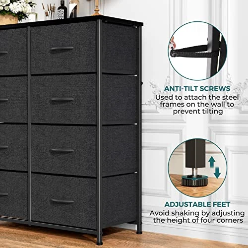 - Sturdy Frame: The high-quality metal frame extends the lifespan of the chest of drawers while keeping the chest of drawers stable and sturdy at any time. With 4 height-adjustable feet to protect your floor from scratches,you can also adjust the balance of the chest of drawers in small areas.