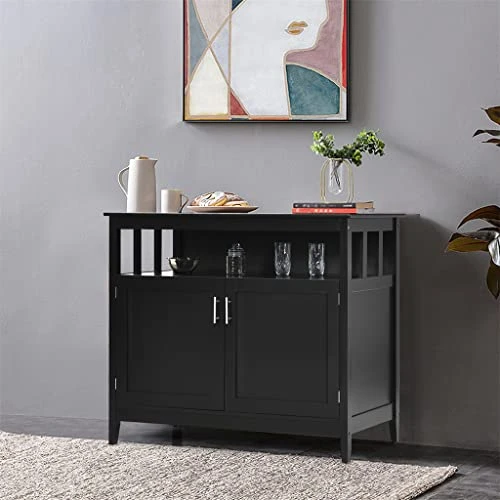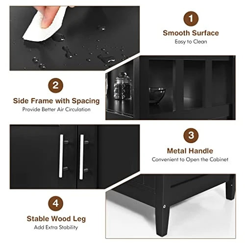 - There is a large double door storage cabinet that can store all your kitchen gadgets making it a as well as a space saver for your kitchen.