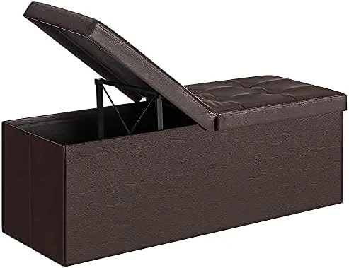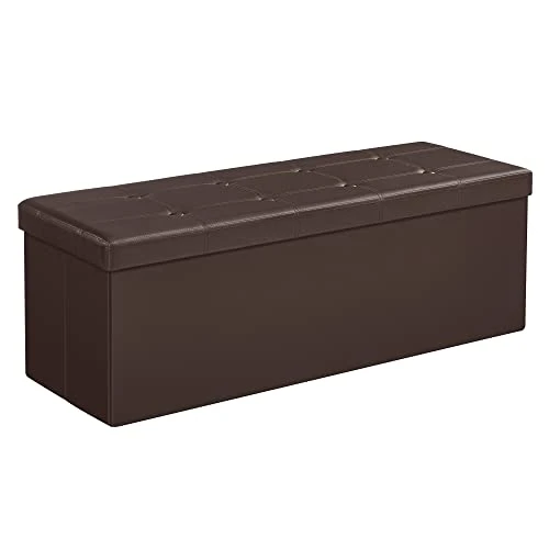 SONGMICS 30 Inches Folding Storage Ottoman Bench, Storage Chest Footstool, Brown ULSF45BR & 43 Inches Folding Storage Ottoman Bench, Storage Chest, Footrest, Holds Up To 660 Lb, Brown ULSF703