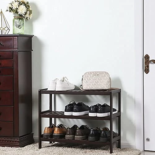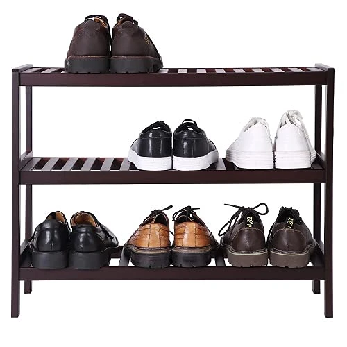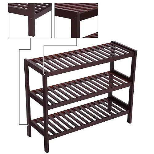 - SPACE SAVER WITH LARGE CAPACITY: The shoe rack (27. 6”L x 9. 8” W x 21. 7”H) takes up little space, 3 slatted shelves fits 9-12 pairs of shoes; the middle and bottom shelf with clearance of 7. 1” is great for flats, sneakers, slippers or kid’s shoes, top shelf for boots or large items