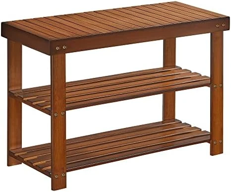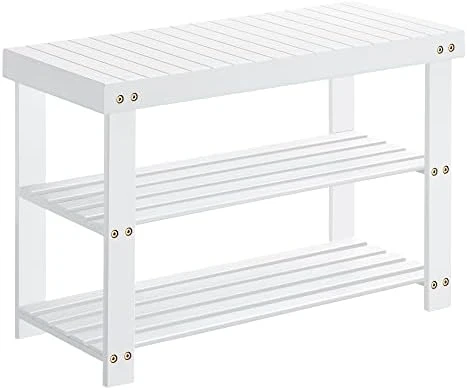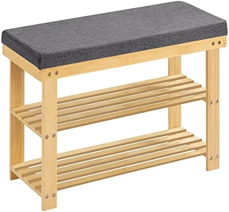 - [What You Get] A bamboo shoe bench that allows you to sit down and change shoes while keeping your footwear under control with 2 shelves underneath