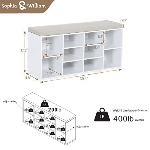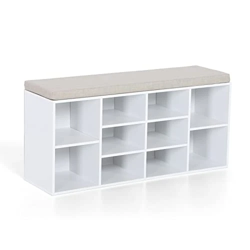 - Comfortable: A thick seat cushion comes with the storage bench. Instead of bending down your body and hopping around on one leg or sitting on a hard stool, you can sit on this comfortable shoe bench comfortably and put on your shoes. The cushion cover is removable and easy to clean