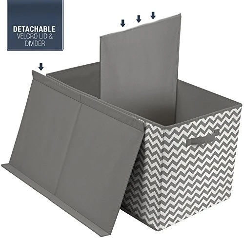 - FOLDABLE & DETACHABLE — Collapsible chest saves space when not in use — Folds flat for easy storage under bed, behind door, on shelf — Removable flip top lid keeps contents out of sight when closed and detaches with Velcro tab to be used as open top storage chest — Divided interior separates your contents and detaches with Velcro tab for larger items
