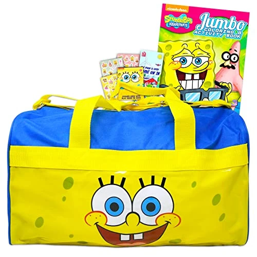 - Perfect for long road trips, flights, boat rides, and more, the Spongebob carry on duffle bag also comes with 1 Spongebob coloring and activity book.