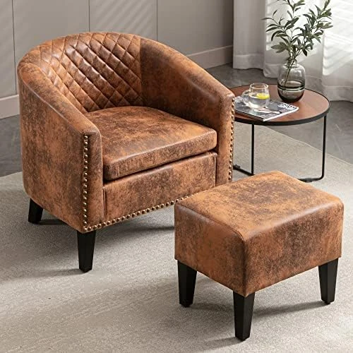 - ♫ღOur leather upholstered barrel tub chair with modern nailhead Trim is super easy to assemble. Only few minutes needed. We have installation video for your reference if you need