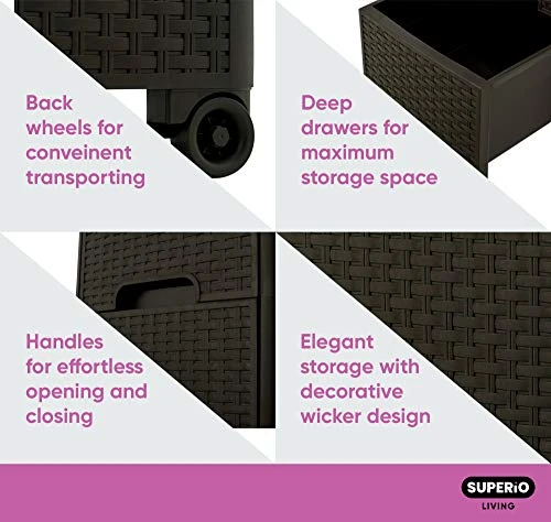 - TWO-WHEEL STORAGE: You get organization and storage on wheels! The wheels make it a simple task to slide and maneuver the entire organizer around the home.