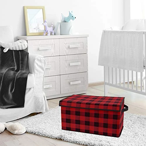 - Features a Red and Black Lumberjack Buffalo Plaid Check Flannel