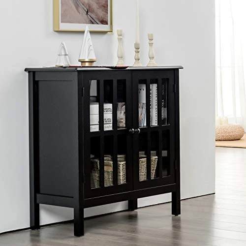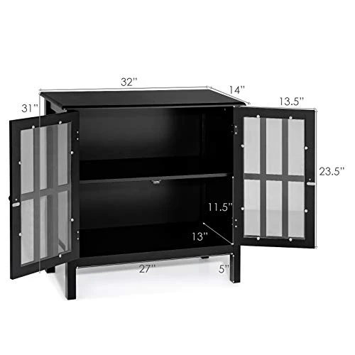 - 【Multiple Values & Premium Performance】With 2-tier shelf and 2 tempered glass doors design, you can surprisingly place your any items in or on it as you like. Transparent glass-paneled doors makes it easy for you to identify your goods With handle for easy opening and closing.