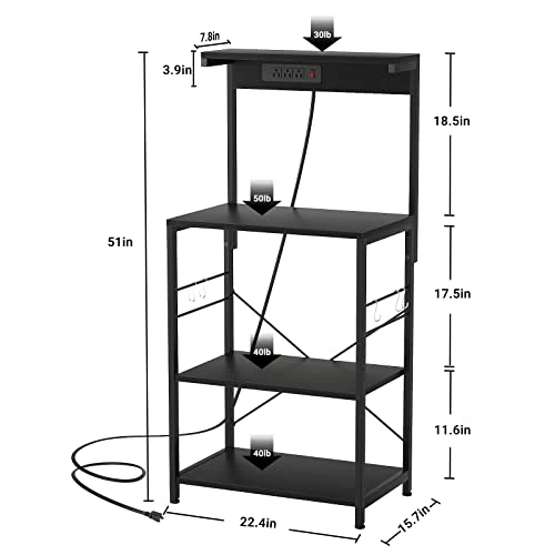- 【Super Sturdy Construction】4-Tier Kitchen Bakers Rack is made from high-quality P2 MDF Board and metal frame to offer each tier large weight capacity over 50lbs. The X-bracing design offers a large weight capacity which provides more support and ensures stability and durability.