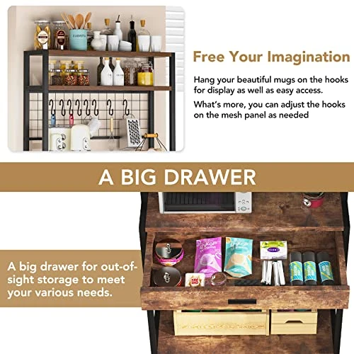 - VISUAL CHARISMA – Classic clean design and rustic wood warmth combined with this tall shelf with storage. It has melding industrial beauty and urban styles together with a touch of history, it can serve as an accent piece and add depth to your living area. Give your kitchen a refresh that’s as charming as it is practical