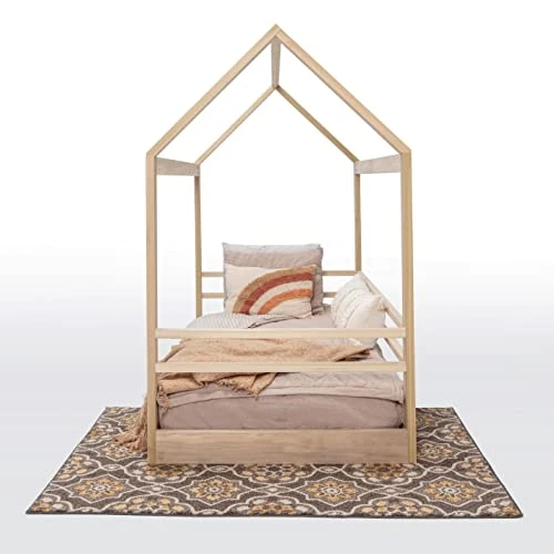 SOFTSEA Twin House Bed With Trundle Twin Platform Bed Frame With Roof For Boys And Girls