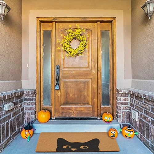 - 😸【Durable & Easy to Clean】Made of 100% high quality faux coir fiber, our stylish cat door mats are durable and tough, no split, no hair loss and can withstand any weather. This entrance rug is a great low-maintenance. Simply shake it off or sweep away all dirt and debris.
