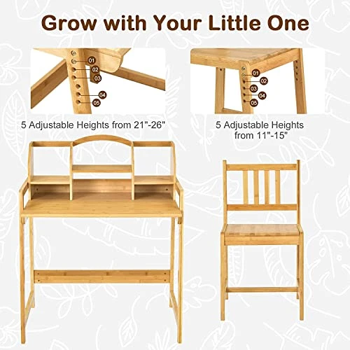 - HEIGHT ADJUSTABLE: Both desk and chair are height adjustable to keep up with your fast growing kids,