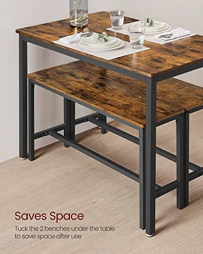 - [Saves Space] The two, 19.7” high benches can be easily pulled out when in use and pushed in under the 29.5” high dining table when not in use, letting you maximize the use of your space