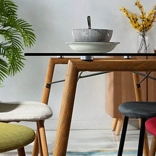 - HIGH QUALITY MATERIAL : The clear glass top is scratch resistant supported by metal legs that create a wooden look which provide stability so the table will not wobble or tip over.