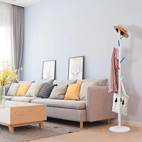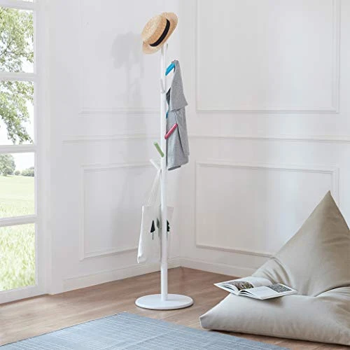 - [MULTIFUNCTIONAL SPACE SAVER] With 8 hooks, the free standing coat hanger stand is convenient to get your daily outfits well-organized, such as clothes, handbags, scarves, and very space-saving. Suitable for many space, such as office room, living room, entryway, study room, bedroom, hall, etc.. Fits in a corner easily. Free to decorate home and office.