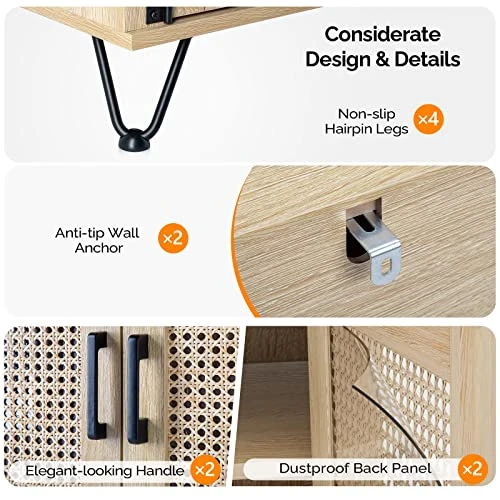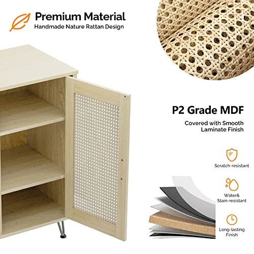 - 【NATURE RATTAN DESIGN】Stylish and sturdy TV stand featuring a unique rattan design that adds sophistication to any decor