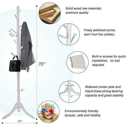 - ★ 【INCREDIBLY STRONG AND STURDY DESIGN】The standing coat hanger has 8 super- strong diagonal hooks that can easily withstand the weight of your heavy winter coats. At the same time, the base of the durable standing rack has a tripod design that prevents the rack from falling, even when it’s loaded with multiple pieces of clothing and accessories. Don’t be afraid to load this coat rack hanger!